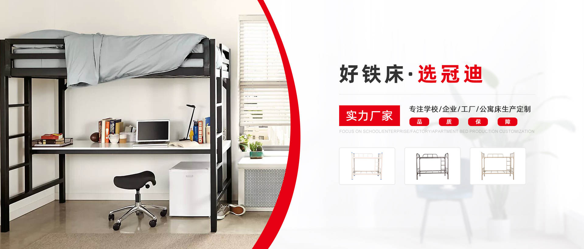 冠迪五金-看得見的鐵床生產實力 現(xiàn)代化生產制造企業(yè),為超過1000企業(yè)單位提供公寓宿舍鐵床鐵柜整體解決方案